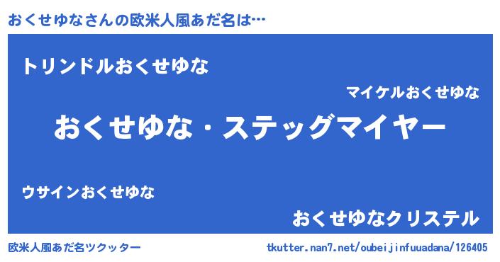 | 恥ずかしいあだ名 | 『おくっちょ』『プリティーおくせゆな』 |
