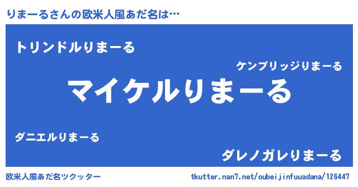 | 男性向けラノベタイトル風あだ名 | 『りまーるの憂鬱』『リマールスレイヤー』 |