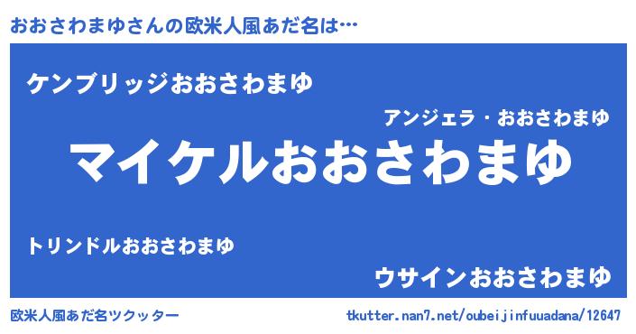 | 男性向けラノベタイトル風あだ名 | 『オオサワマユアートオンライン』 |