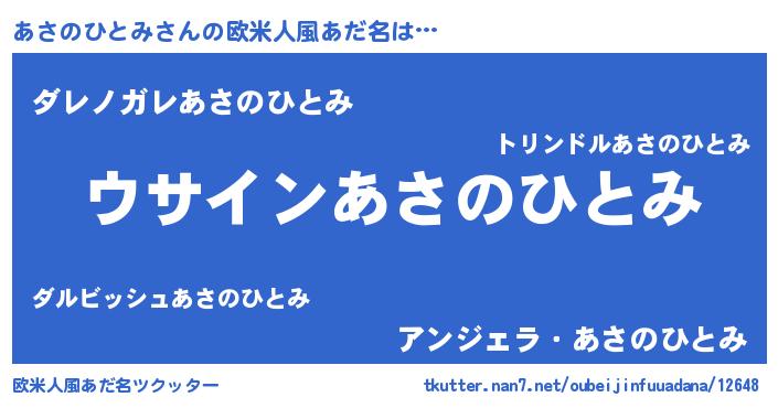 | 男性向けラノベタイトル風あだ名 | 『あさのひとみの嫁は女の子じゃないと思った?』 |