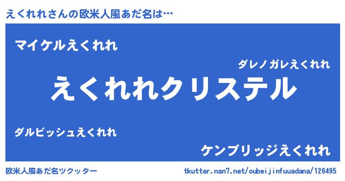 | 意味不明あだ名 | 『えくれれフォーエバー』『自称えくれれ』 |