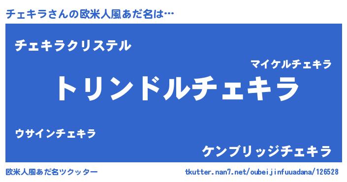 | 男性向けラノベタイトル風あだ名 | 『転生したらチェキラだった件』 |