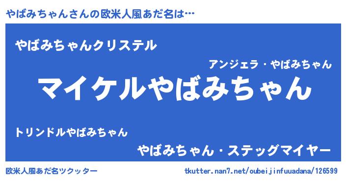 | 男性向けラノベタイトル風あだ名 | 『ヤバミチャンアートオンライン』 |