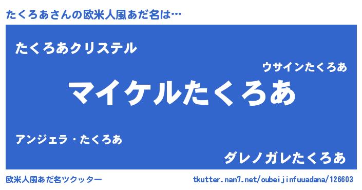| 男性向けラノベタイトル風あだ名 | 『タクロアアートオンライン』 |