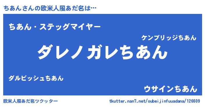 | 意味不明あだ名 | 『住所不定無職ちあん(4歳)』『自称ちあん』 |