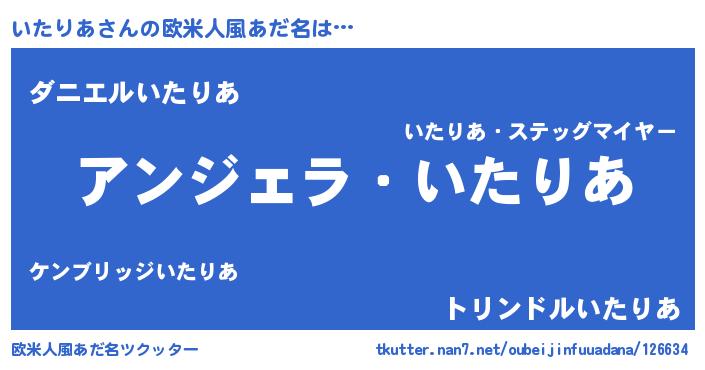 | ヘコむあだ名 | 『いたりあ(笑)』『いたお』『豆乳』 |