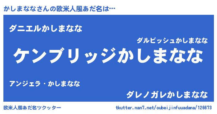 | 意味不明あだ名 | 『自称かしまなな』『永久保存かしまなな』 |