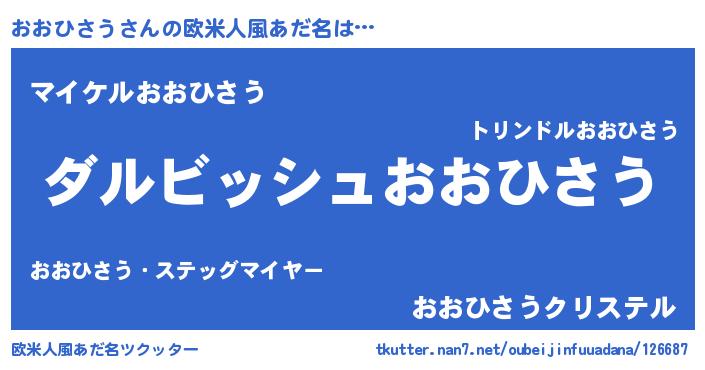 | 胡散臭い通販商品みたいなあだ名 | 『絶対に幸福をもたらす水素水…その名も「おおひさう」』 |