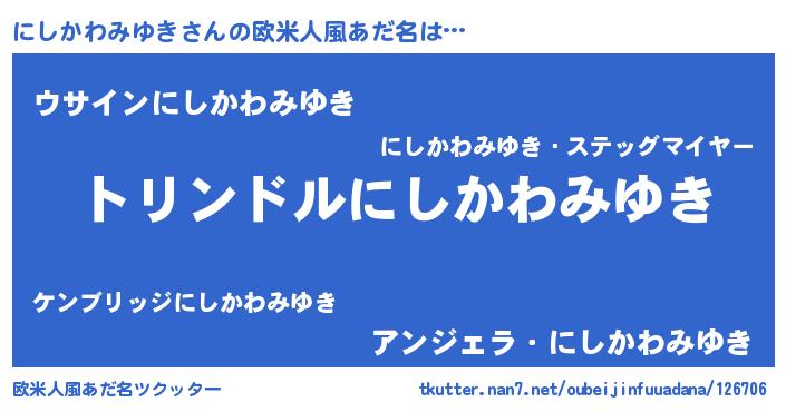 | ヘコむあだ名 | 『にしを』『にしかわみゆき(笑)』 |