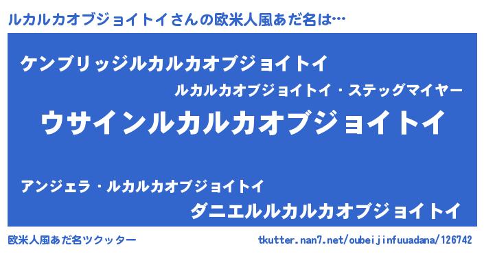 | 意味不明あだ名 | 『とにかく怪しいルカルカオブジョイトイ』 |
