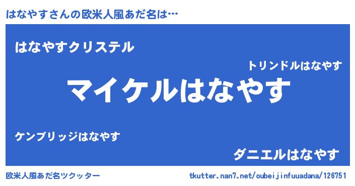 | ファンタジー風あだ名 | 『ハナフェル』『エターナルハナヤスー』 |
