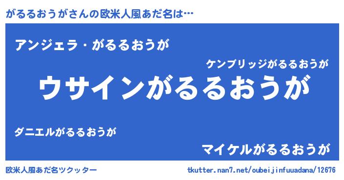 | 男性向けラノベタイトル風あだ名 | 『がるるおうがの嫁は女の子じゃないと思った?』 |