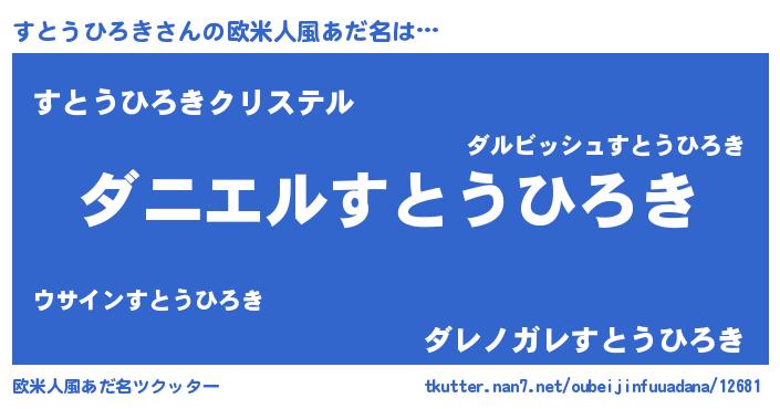 | 男性向けラノベタイトル風あだ名 | 『おまえをオタクにしてやるから、俺をすとうひろきにしてくれ! 』 |