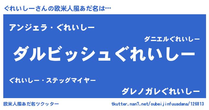 | 意味不明あだ名 | 『永久保存ぐれいしー』 |