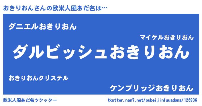 | ヒーロー風カッコイイあだ名 | 『ネオオキリオン』『愛の使者おきりおん』 |