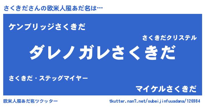 | 男性向けラノベタイトル風あだ名 | 『この素晴らしい世界にさくきだを!』 |