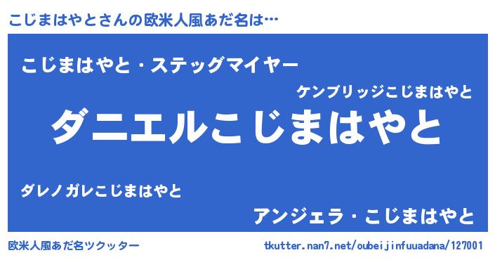 | 男性向けラノベタイトル風あだ名 | 『おまえをオタクにしてやるから、俺をこじまはやとにしてくれ! 』 |