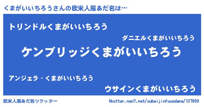 女子向けラノベタイトル風あだ名 | 『くまがいいちろうストレイドッグス』 |