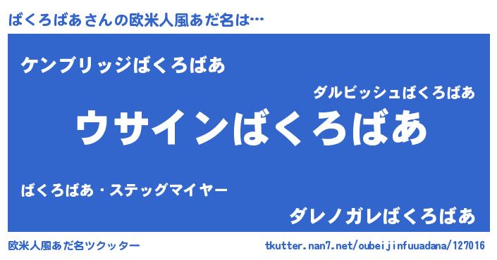 | 男性向けラノベタイトル風あだ名 | 『ダンジョンにばくろばあを求めるのは間違っているだろうか』 |