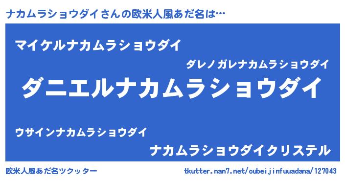 | ヒーロー風カッコイイあだ名 | 『慈愛の使者ナカムラショウダイ』 |