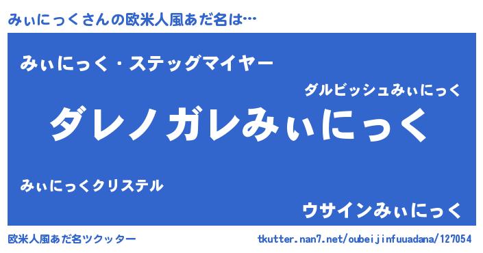 | 男性向けラノベタイトル風あだ名 | 『この素晴らしい世界にみぃにっくを!』 |