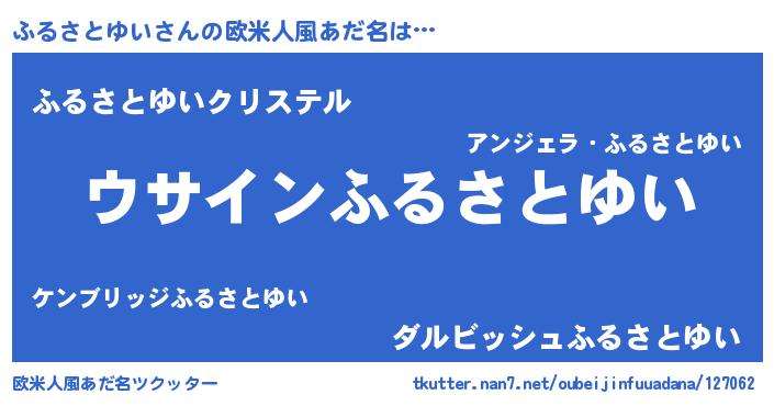 | 女子向けラノベタイトル風あだ名 | 『ふるさとゆい様がみてる』 |