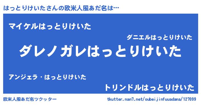 | 意味不明あだ名 | 『住所不定無職はっとりけいた(50歳)』 |