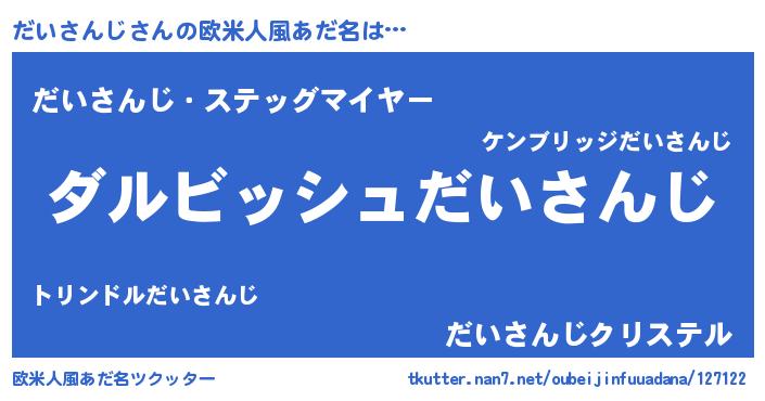 | 男性向けラノベタイトル風あだ名 | 『誰もが恐れるあのだいさんじが、ぼくの専属メイドになるようです。』 |
