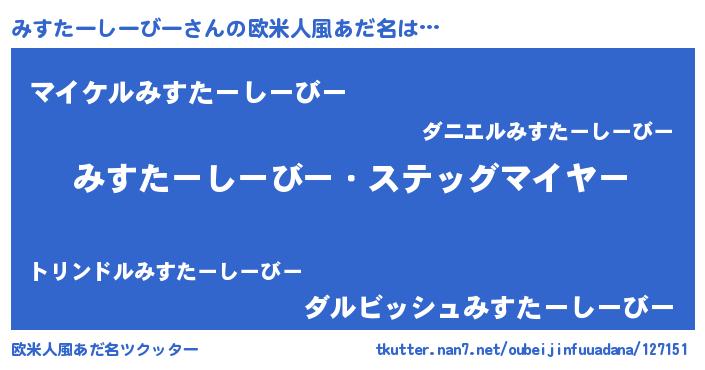 | ヘコむあだ名 | 『みすっふぃ~』『みすたーしーびー(爆)』 |
