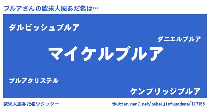 | 男性向けラノベタイトル風あだ名 | 『ブルアの憂鬱』『魔法科高校のブルア』 |