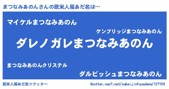 | ヘコむあだ名 | 『まつもー』『まつなみあのん(小並感)』 |