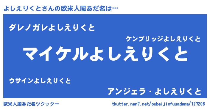 | 男性向けラノベタイトル風あだ名 | 『ヨシエリクトアートオンライン』 |