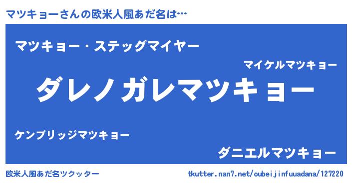 | 女子向けラノベタイトル風あだ名 | 『乙女ゲームの破滅フラグしかない悪役マツキョーに転生してしまった…』 |