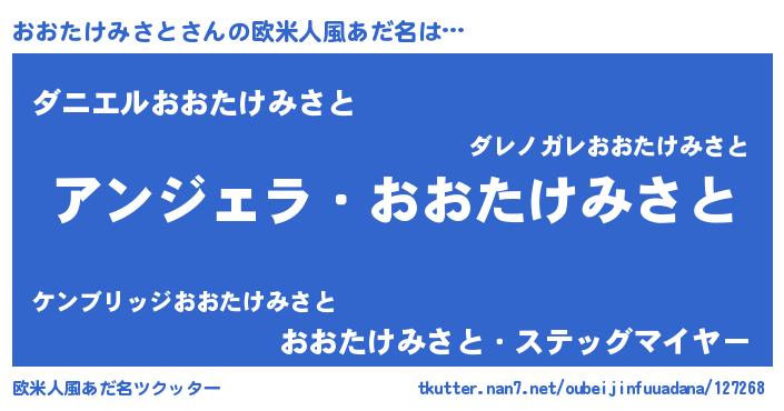 | 男性向けラノベタイトル風あだ名 | 『おおたけみさとに滅ぼされるだけの簡単なお仕事です』 |
