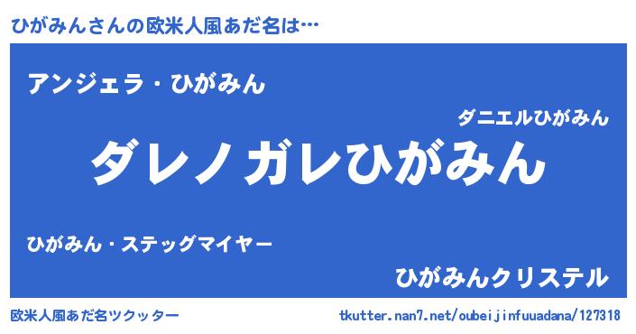 | ヒーロー風カッコイイあだ名 | 『仮面ヒガダー』『ウルトラひがみんマン』 |