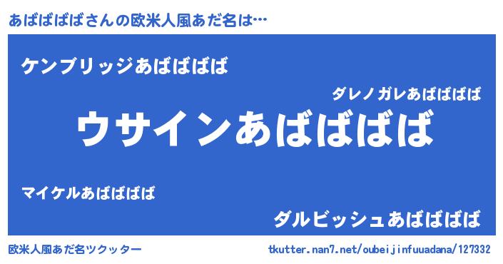 | 男性向けラノベタイトル風あだ名 | 『あばばばばの嫁は女の子じゃないと思った?』 |