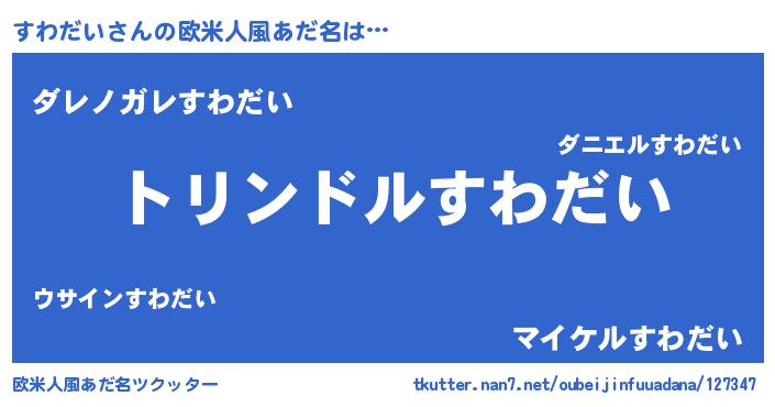| 男性向けラノベタイトル風あだ名 | 『転生したらすわだいだった件』 |
