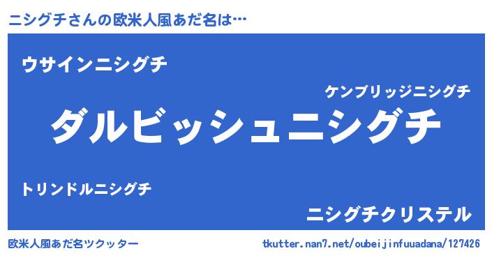 | 男性向けラノベタイトル風あだ名 | 『ニシグチという概念が存在しない退屈な世界 』 |