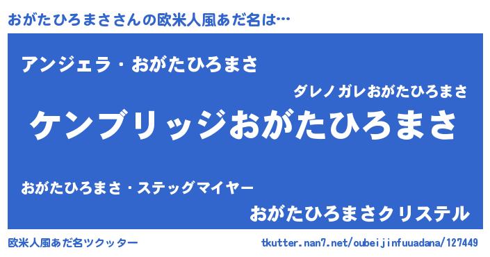 | 男性向けラノベタイトル風あだ名 | 『Re:おがたひろまさから始める異世界生活』 |