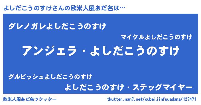 | 男性向けラノベタイトル風あだ名 | 『よしだこうのすけに滅ぼされるだけの簡単なお仕事です』 |