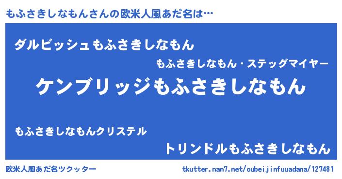 | 男性向けラノベタイトル風あだ名 | 『Re:もふさきしなもんから始める異世界生活』 |