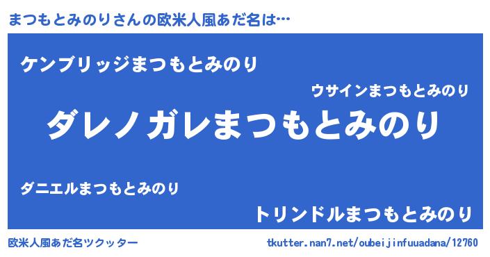 | 男性向けラノベタイトル風あだ名 | 『この素晴らしい世界にまつもとみのりを!』 |