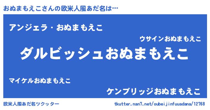 | 意味不明あだ名 | 『永久保存おぬまもえこ』 |