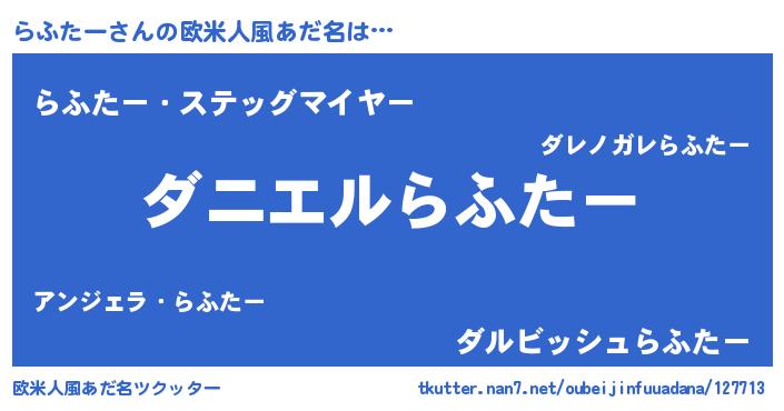 | ヘコむあだ名 | 『らふたー(爆)』『豆乳』『らふお』 |