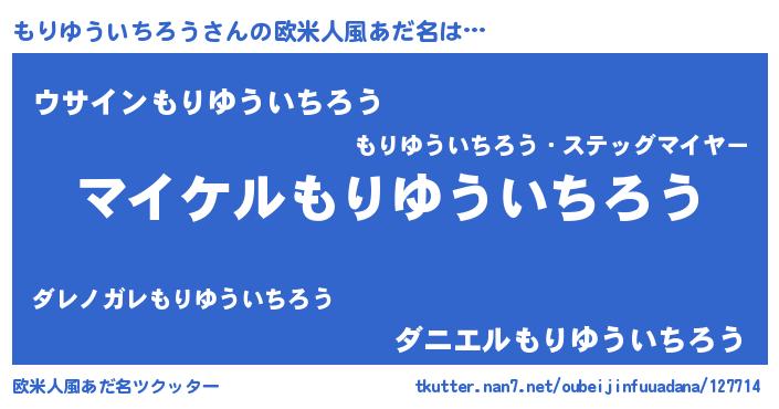 | 男性向けラノベタイトル風あだ名 | 『もりゆういちろうの憂鬱』 |