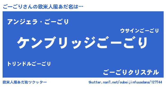 | 男性向けラノベタイトル風あだ名 | 『Re:ごーごりから始める異世界生活』 |
