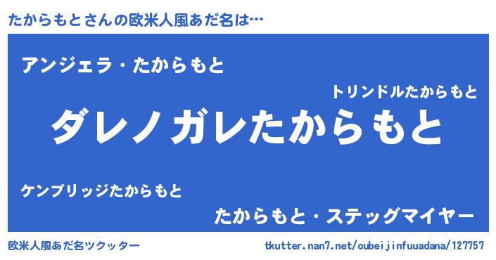 | 意味不明あだ名 | 『住所不定無職たからもと(81歳)』 |
