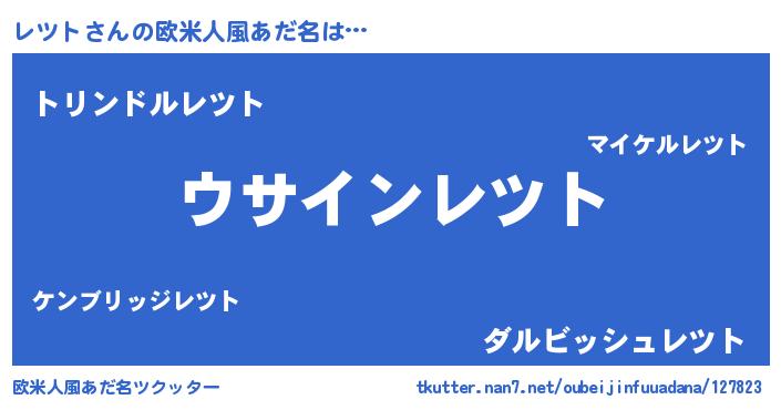 | 男性向けラノベタイトル風あだ名 | 『レツトの嫁は女の子じゃないと思った?』 |