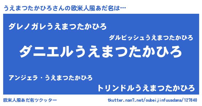 | 女子向けラノベタイトル風あだ名 | 『うえまつたかひろ夫妻のなれそめ』 |