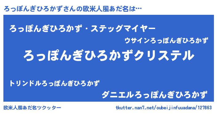 | ファンタジー風あだ名 | 『エターナルロッポンギヒロカズー』 |